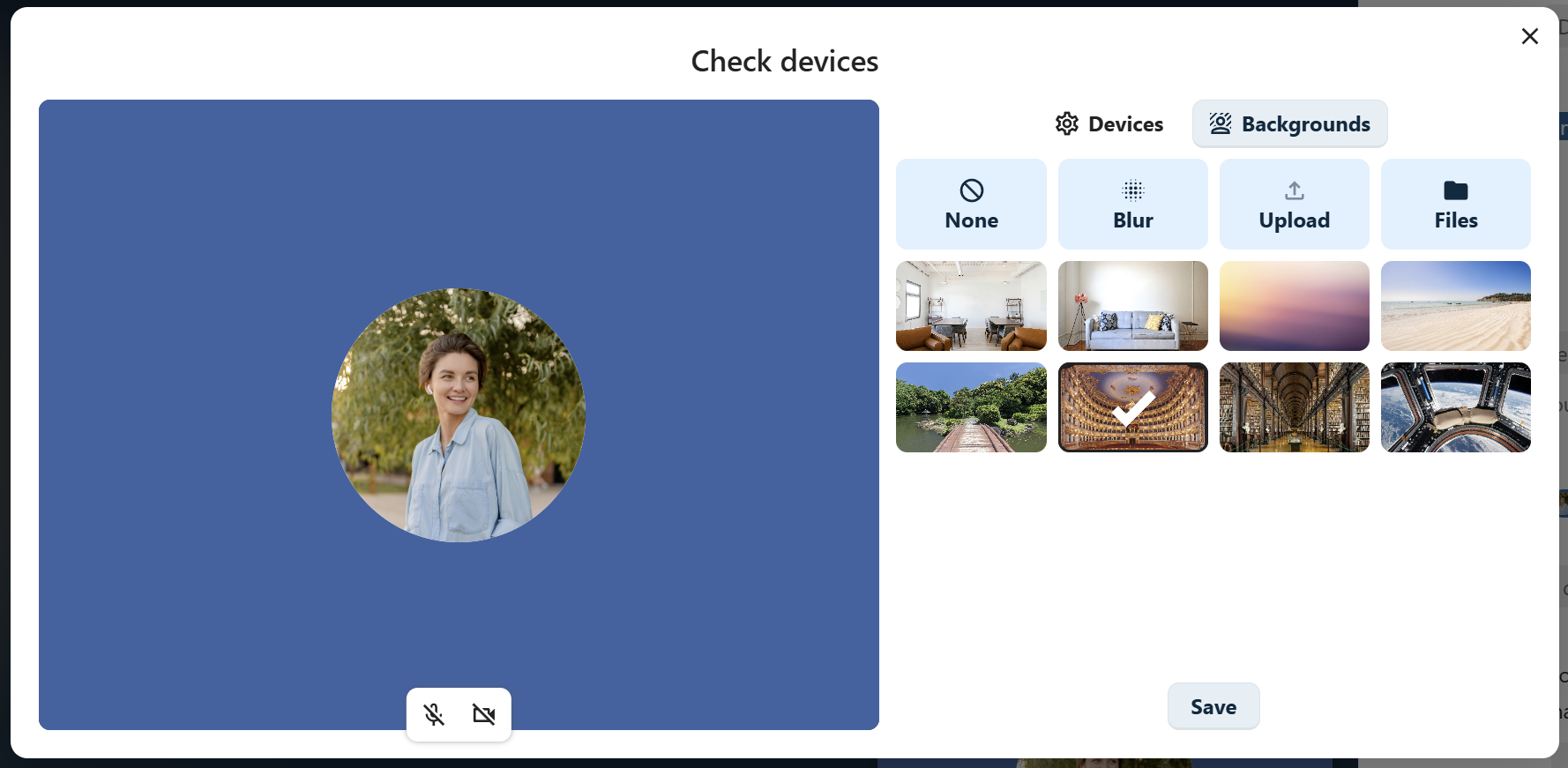 From media settings dialog, you can also change the background of your video.