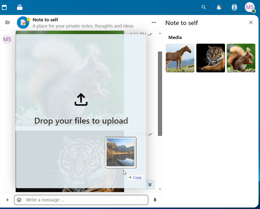 Forward messages from other chat: use the message menu to forward important messages from other conversations to your Note to self.